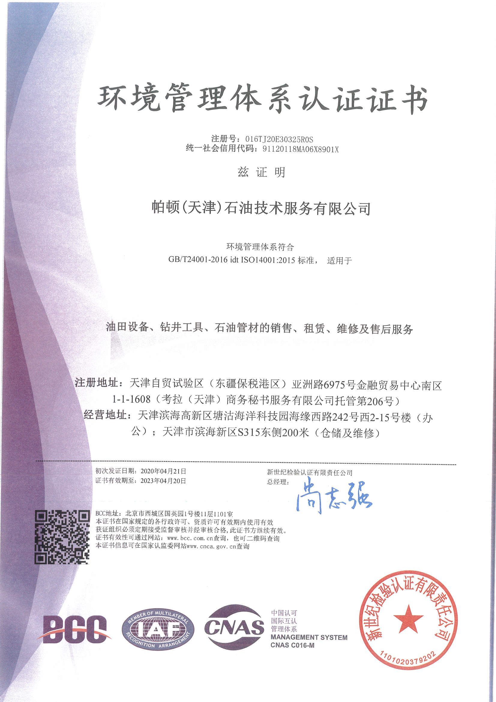 帕顿(天津)石油技术服务有限公司是中海油服、海油发展的合格供应商。具备石油钻采工具、石油机械设备及配件、API石油管材及配件、管件、特殊扣产品、割缝及冲孔防砂筛管的生产加工能力,同时提供石油工具及设备租赁和维修服务的综合性油田服务商。多年来,我司凭借可靠的质量、专业的技术、一流的服务,为用户提供一站式解决方案,与国内外多家大型企业有着紧密的业务往来。公司按照 ISO9001、ISO14001、OHSAS18001标准的要求建立质量、环境、职业健康安全管理体系,考虑了内部和外部因素及产品和服务特性,满足相关方对产品和服务质量的需要,并持续改进其有效性。